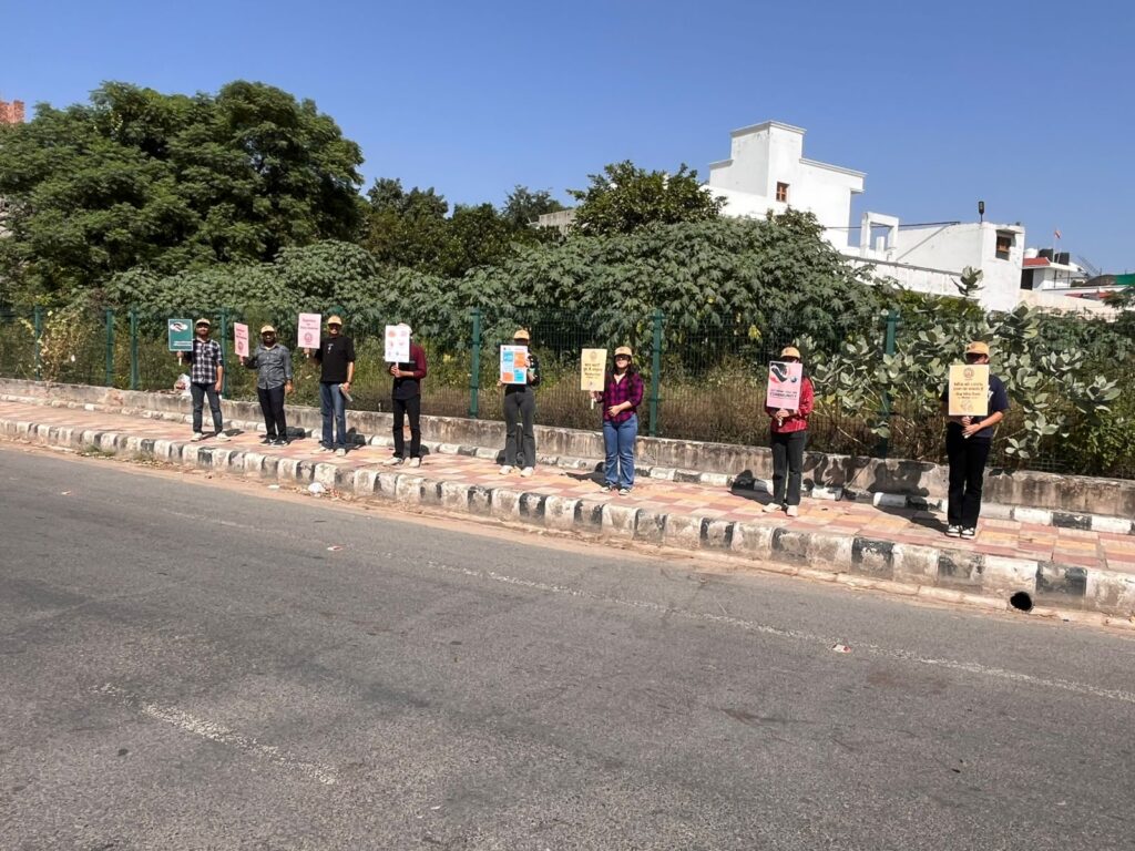 The Ojass volunteers involved in this project, who are students of NorthCap University (BTech) including Ananya Kaushik, Ananya Samant, Pari Mittal, Anvi Chauhan, Aditi Goyal, Abhishek Yadav, Akash Jain, Aditya Sharma, and Anirudh Garg, formed a human chain to amplify the message of awareness and responsibility.